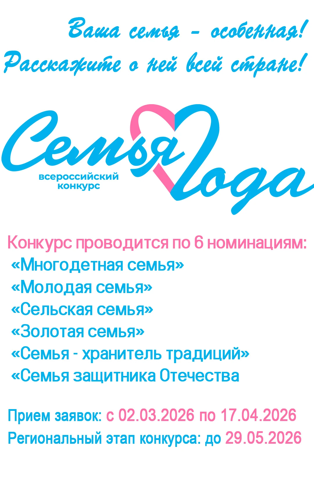 Министерство социальной политики Красноярского края приглашает вас принять участие в региональном этапе Всероссийского конкурса «Семья года»!