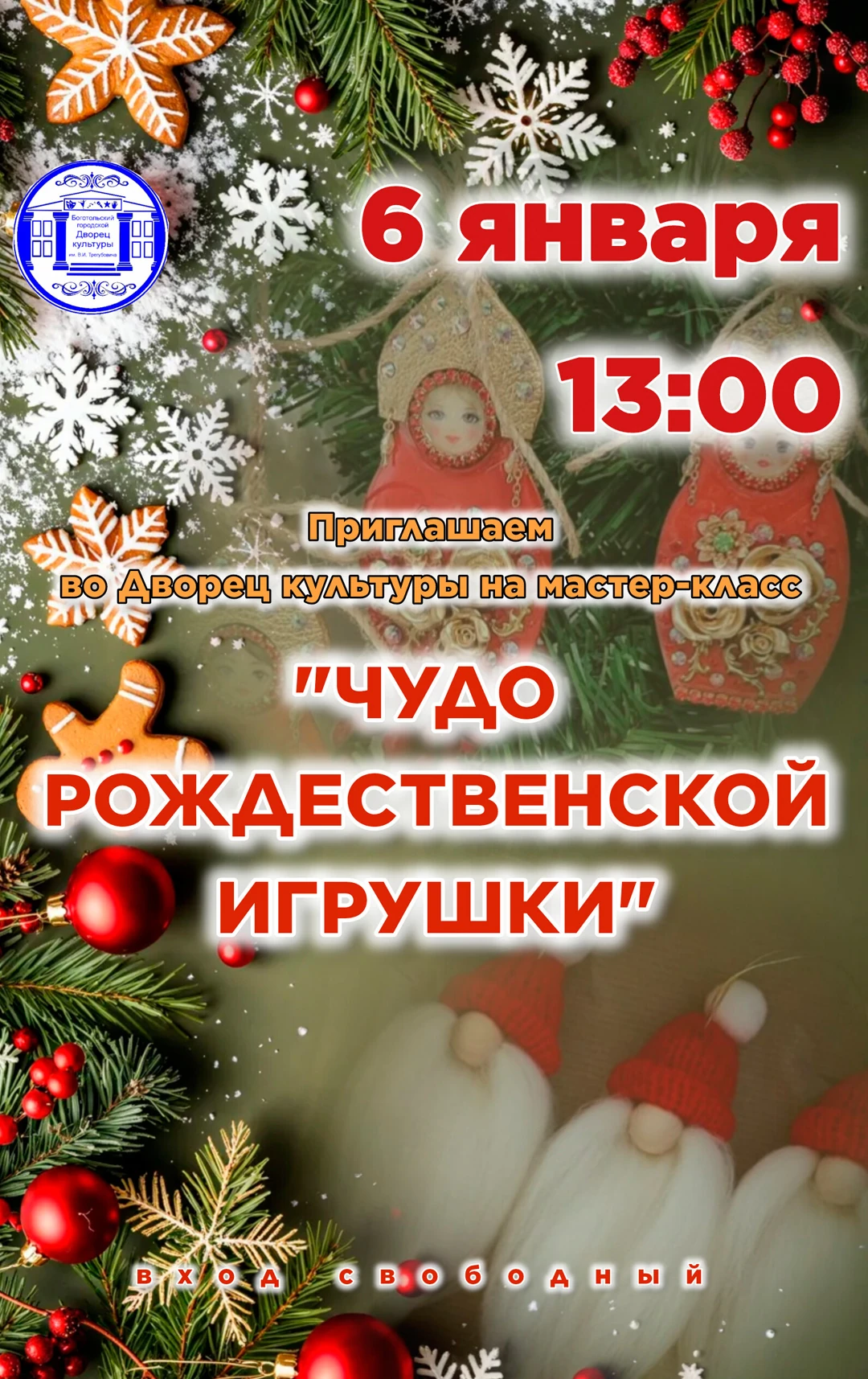 6 января в 13:00 во Дворце культуры пройдёт мастер-класс