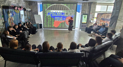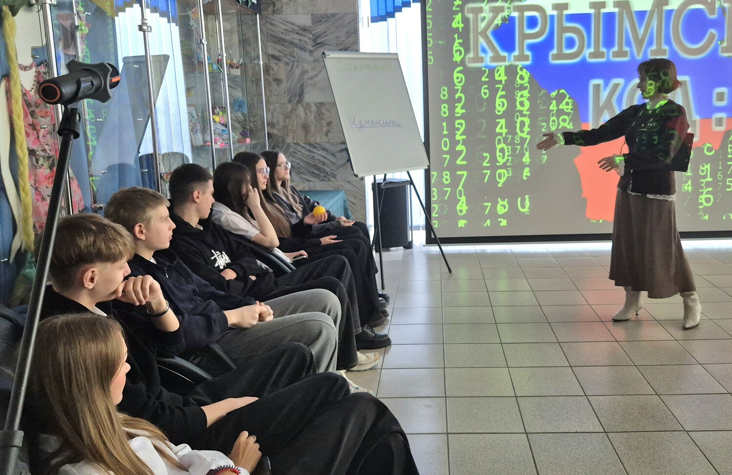 В ДК собрались десятиклассники из МБОУ "СОШ №3 имени Героя Советского Союза Н.П. Шикунова" Вместе с ведущей Ольгой Федоренко они «перезагрузили» свои знания о Крымской земле.