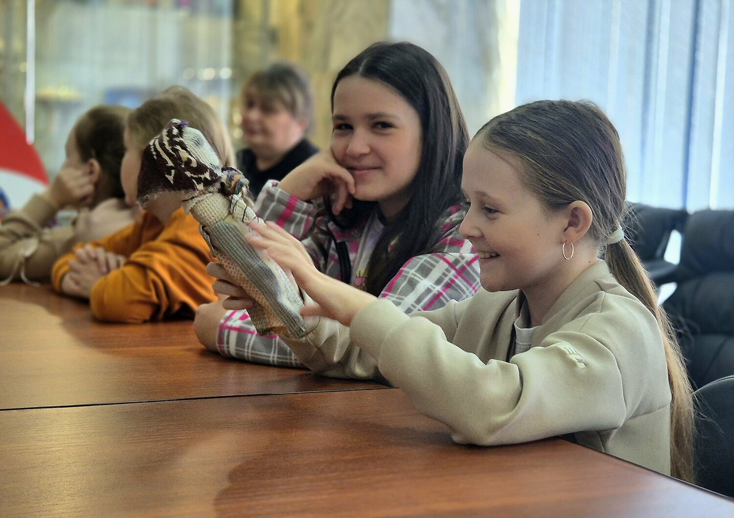 Ребята погрузились в историю суровых лет Великой Отечественной войны. Мастер рассказала, чем играли дети в тылу и на фронте, когда настоящей заводской игрушки просто не было. Куклы делали из всего, что было под рукой: лоскутков старой ткани, соломы, ниток и даже газет. Каждая такая игрушка хранила не просто детский смех, а надежду, тепло и веру в мирное завтра.