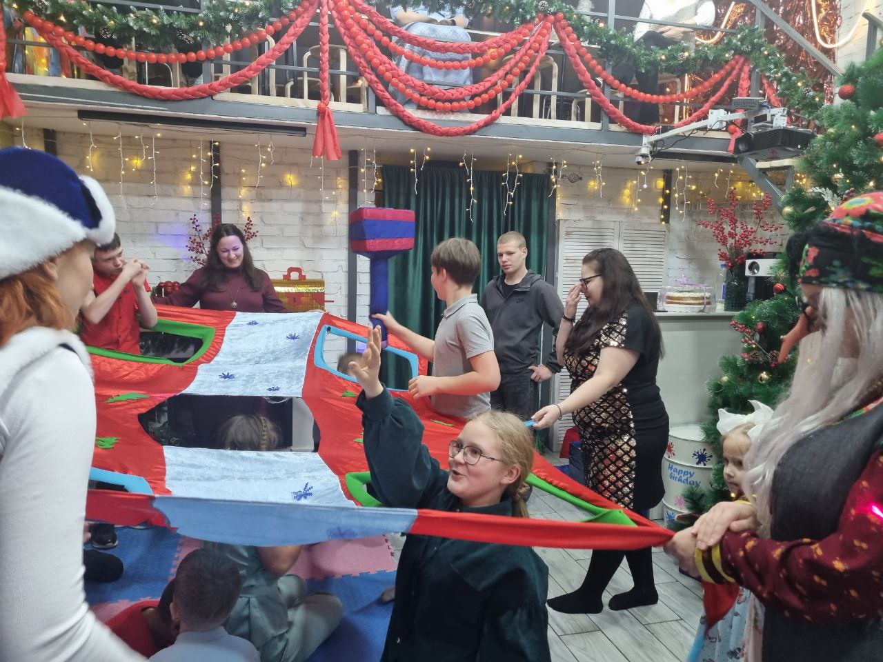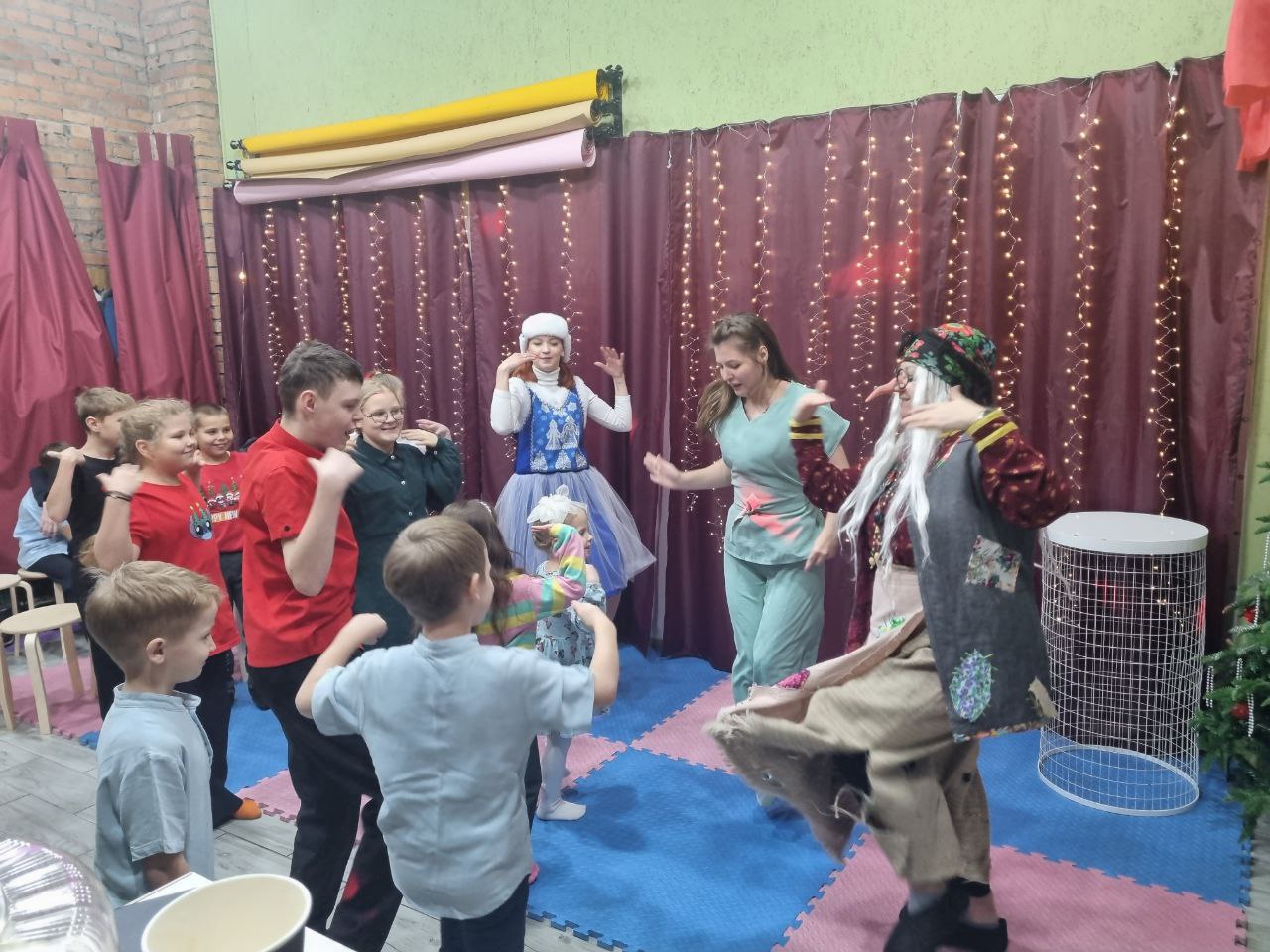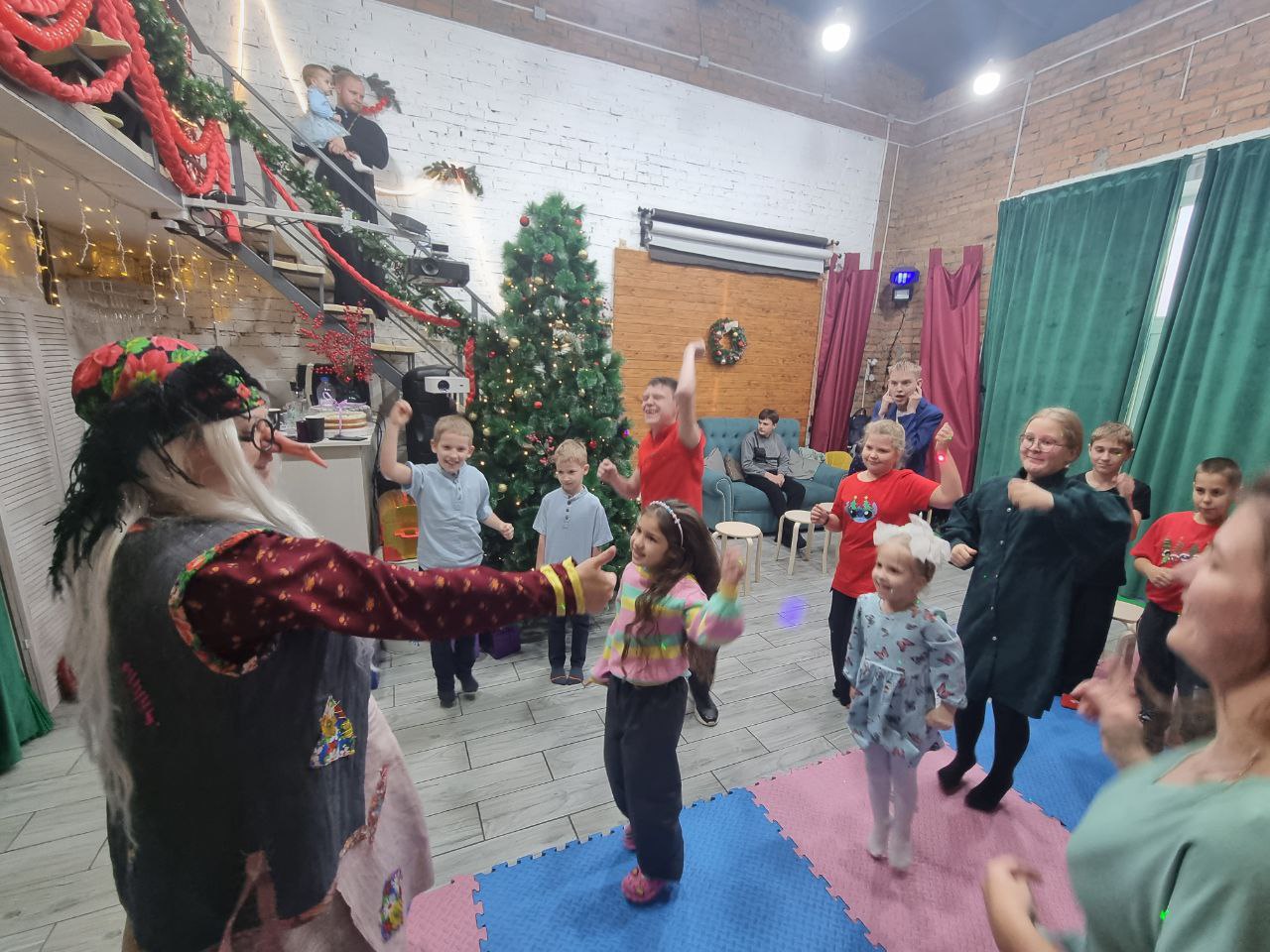 Ребята и их родители окунулись в новогодний марафон веселья с Ядвигой Петровной и Снежинкой — играли, смеялись и заряжались праздничным настроением!