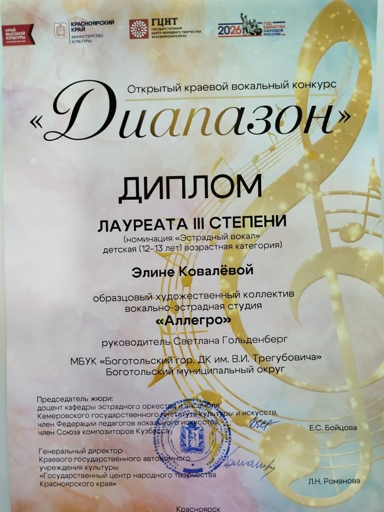 Элина Ковалёва - Диплом Лауреата III степени