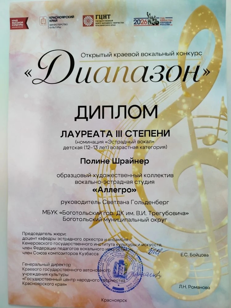 Полина Шрайнер - Диплом Лауреата III степени