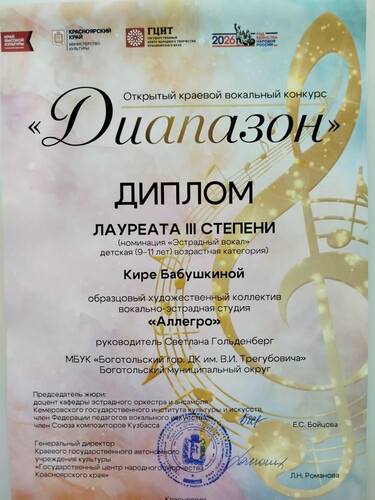 Кира Бабушкина - Диплом Лауреата III степени