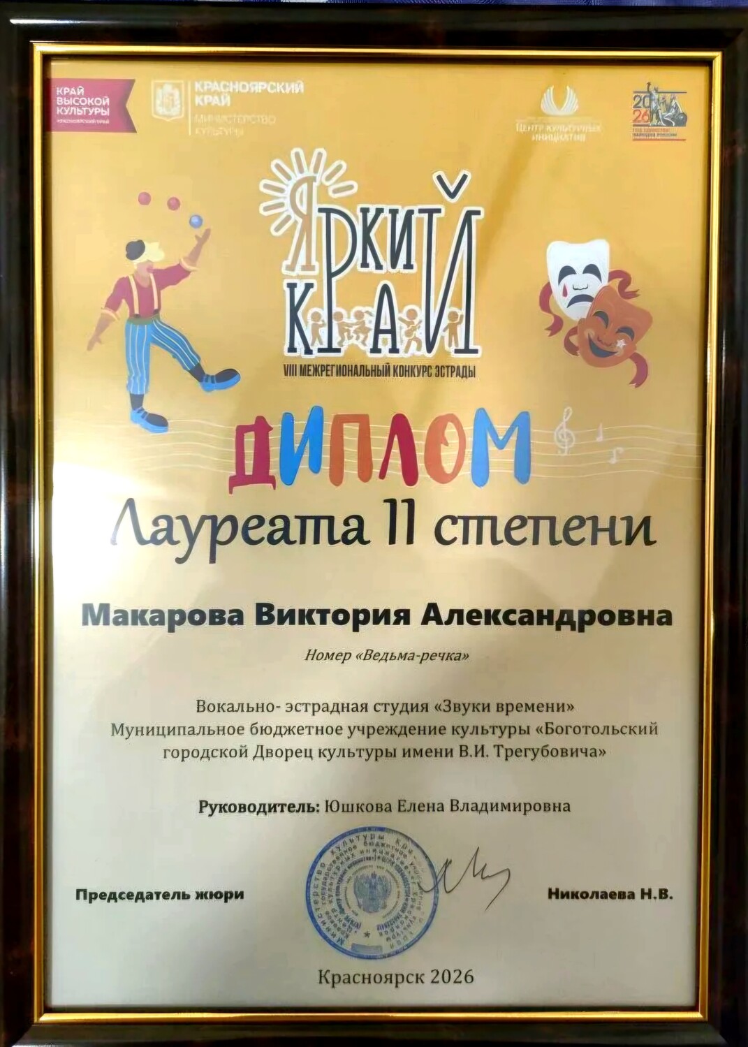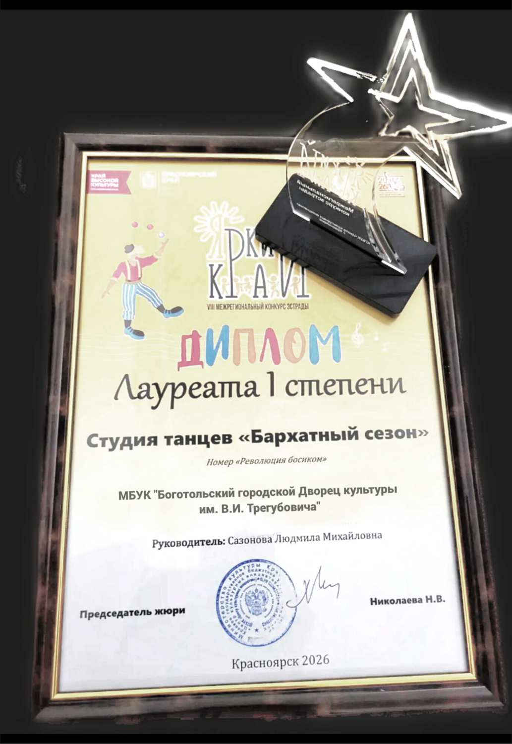 Организаторов и Министерство культуры Красноярского края за безупречную площадку и возможность проявить себя;