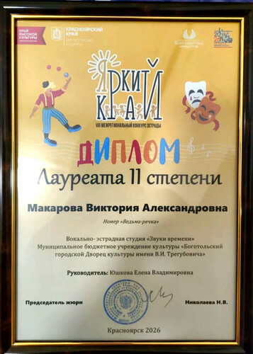 Вокально-эстрадная студия "Звуки времени" Виктория Макарова - Диплом Лауреата II степени;